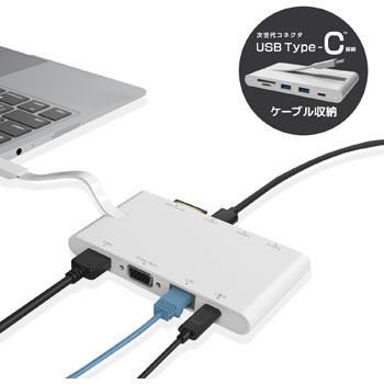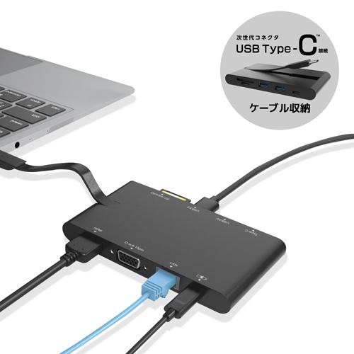 Type Cドッキングステーション Pd対応 充電用type C1ポート データ転送用type C1ポート Usb 3 0 2ポート Hdmi1ポート D Sub1ポート Lanポート Sd Microsdスロット ケーブル収納 エレコム ドッキングステーション マルチ変換アダプタ 通販モノタロウ Dst C05bk