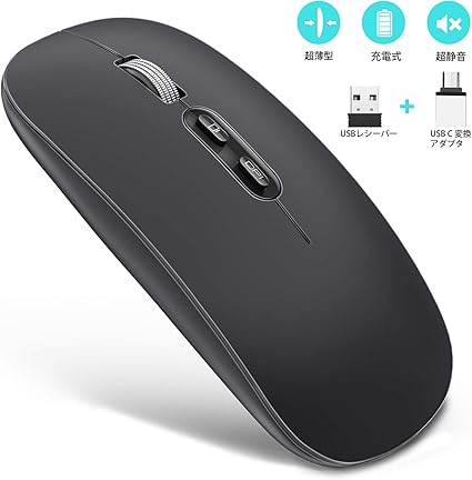 Amazon ワイヤレスマウス 超薄型 静音 軽量 Usb 充電式 無線 マウス 2 4ghz 3dpiモード 省エネルギー 持ち運び便利 Type C変換アダプタ付属 Windows Mac Surface Microsoft Pro Androidに対応 ブラック Karily マウス 通販