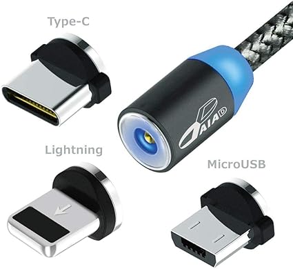 Amazon Co Jp Daiad Microusb マグネット Usb 充電ケーブル 3in1 着脱式 Magnet 磁石式 瞬間脱着 充電三端子付属 Lightning Type C Microusb 防塵 キャップ コネクタ 360度回転 タイプc マイクロusb Iphone Ipad 青色led ナイロン編みメッシュ 充電3端子セット グレー