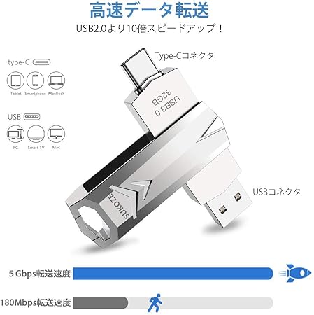 Amazon Sukoze Usbメモリ 32gb Usb3 0 Type C 対応 フラッシュドライブ 小型 高速データ転送 保存 共有 大容量 スマホ コンピュータ 2 In 1 Uディスク 金属 容量不足解消 360度自由回転 プラグアンドプレイ デコード機能 容量拡張 フラッシュメモリー 外部メモリ 外付け