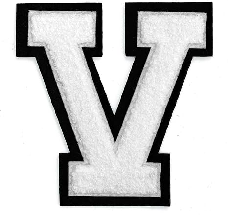 Amazon Com Letter V Chenille Stitch Varsity Iron On Patch By Pc 4 1 2 White Black Tr 11648 Arts Crafts Sewing