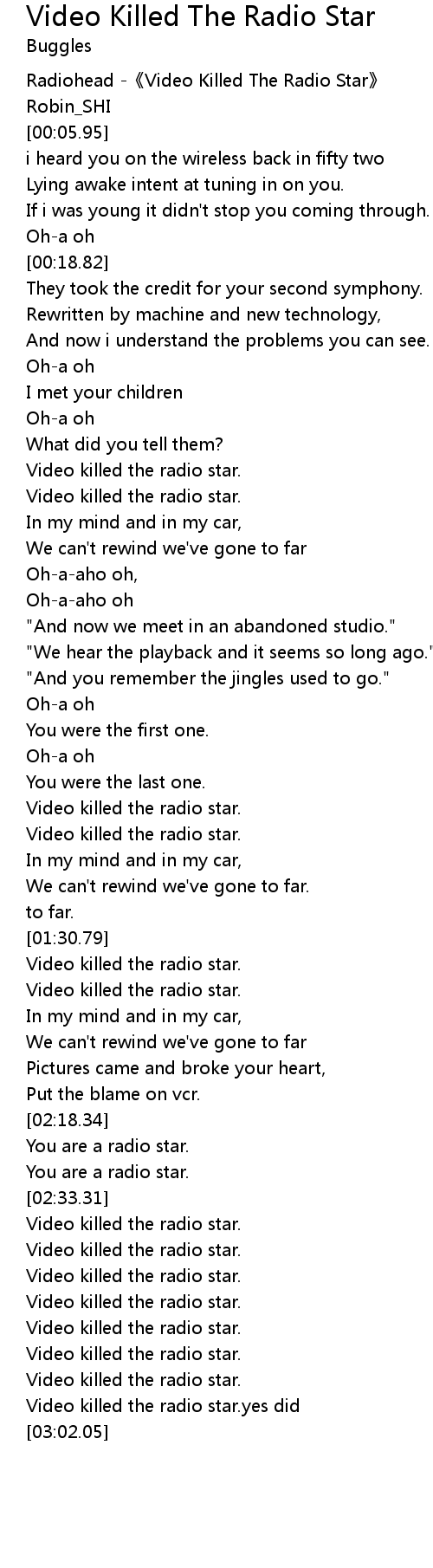 Video Killed The Radio Star Lyrics By Pa Slaget 12 I Heard You On
