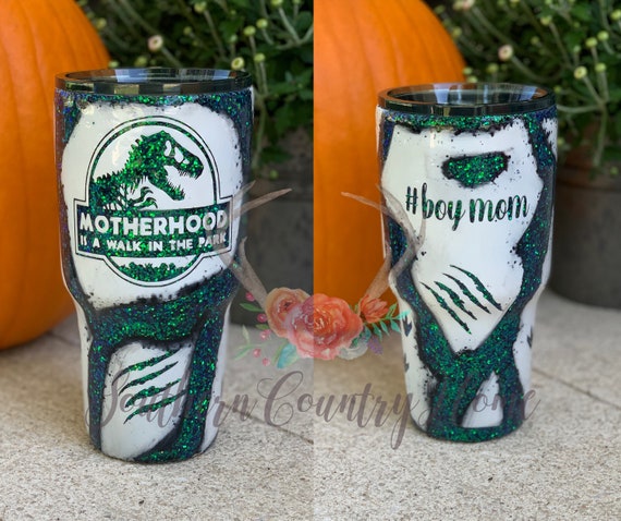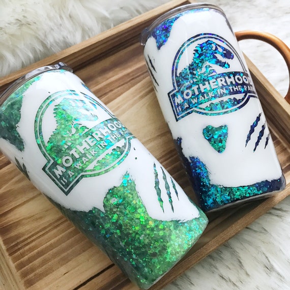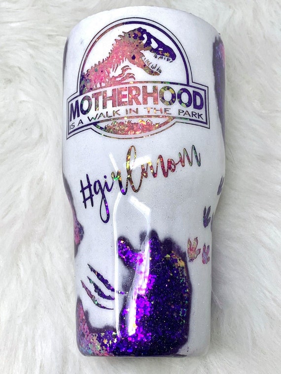 Motherhood Is A Walk In The Park Tumbler Jurassic Park Tumbler Custom Glitter Tumbler Epoxy Dinosaur Cup Mom Life Tumbler Glitter Tumbler Tumbler Cups Diy Mom Tumbler