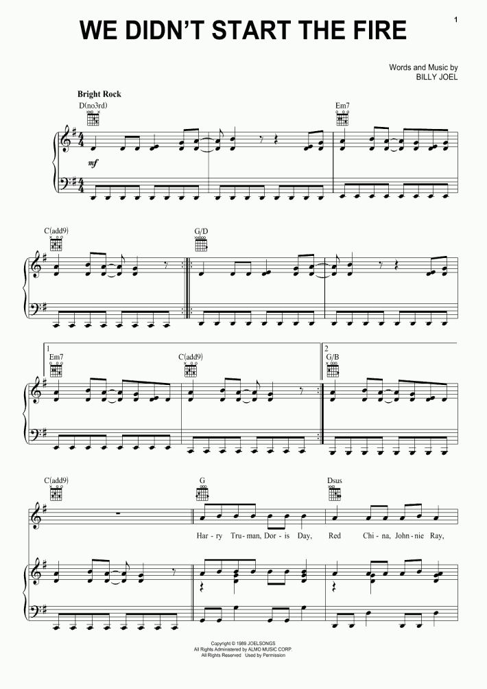 We Didn T Start The Fire Sheet Music Billy Joel Sheetmusic Free Com