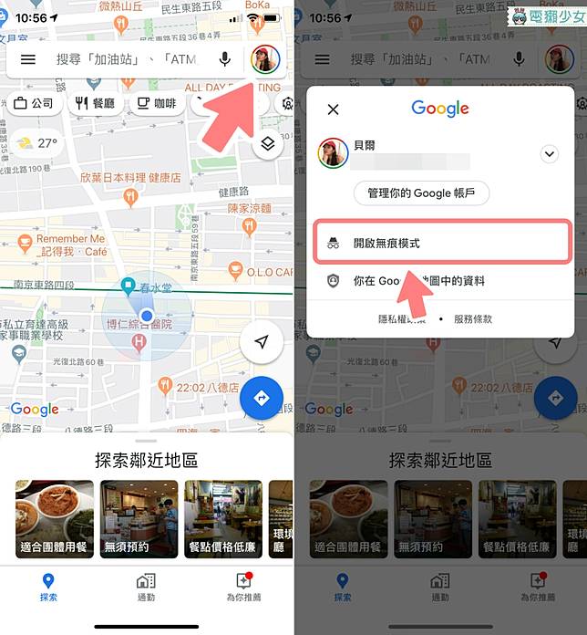 Google Maps 的無痕模式ios 用戶也有啦 不用擔心被別人看到你的搜尋紀錄囉