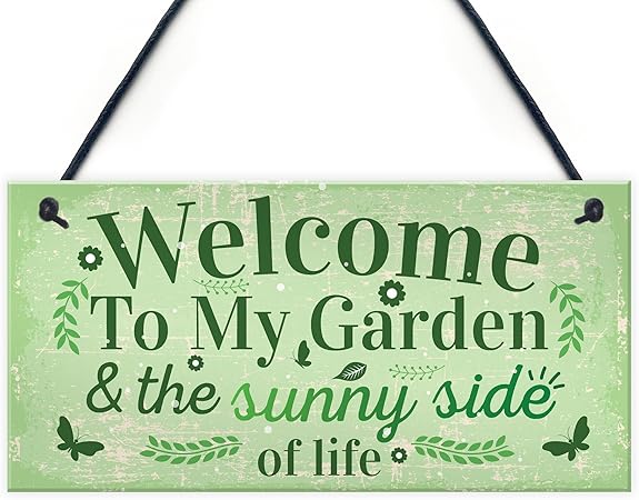Red Ocean Welcome To My Garden Plaque Outdoor Shed Summer House Sign Novelty Chic Decor Friendship Gift Amazon Co Uk Kitchen Home