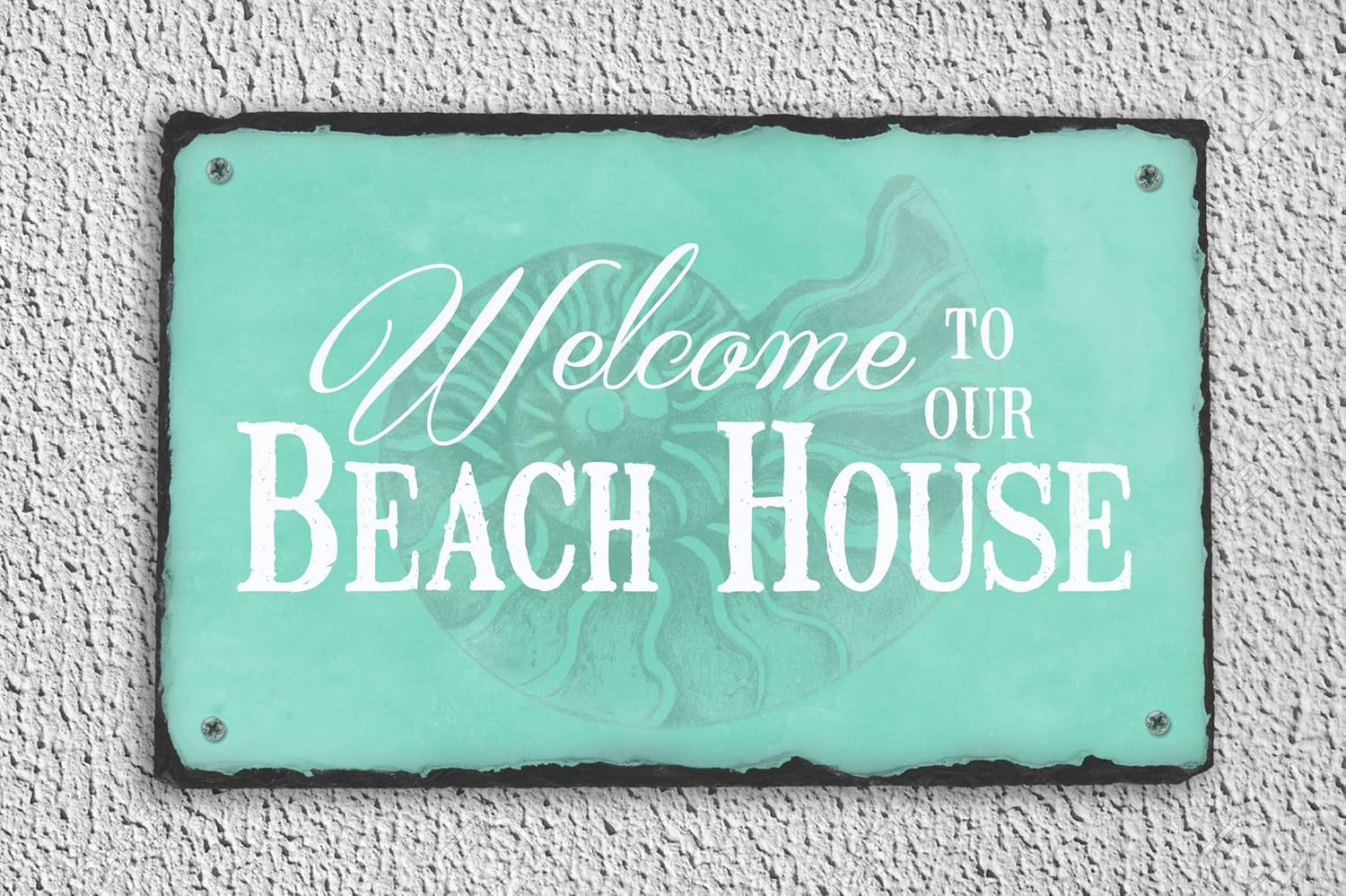 Amazon Com Sassy Squirrel Handcrafted And Personalized Slate House Sign Welcome To The Beach House 12 X8 Home Kitchen