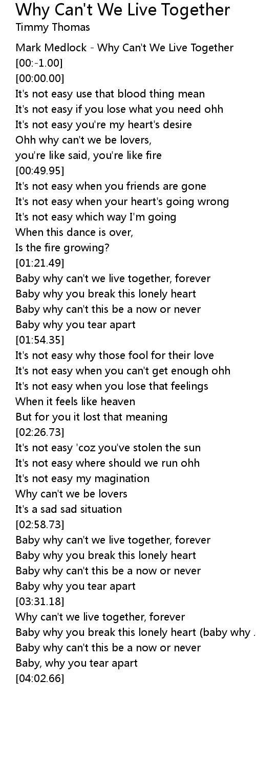 Why Can T We Live Together Lyrics Follow Lyrics