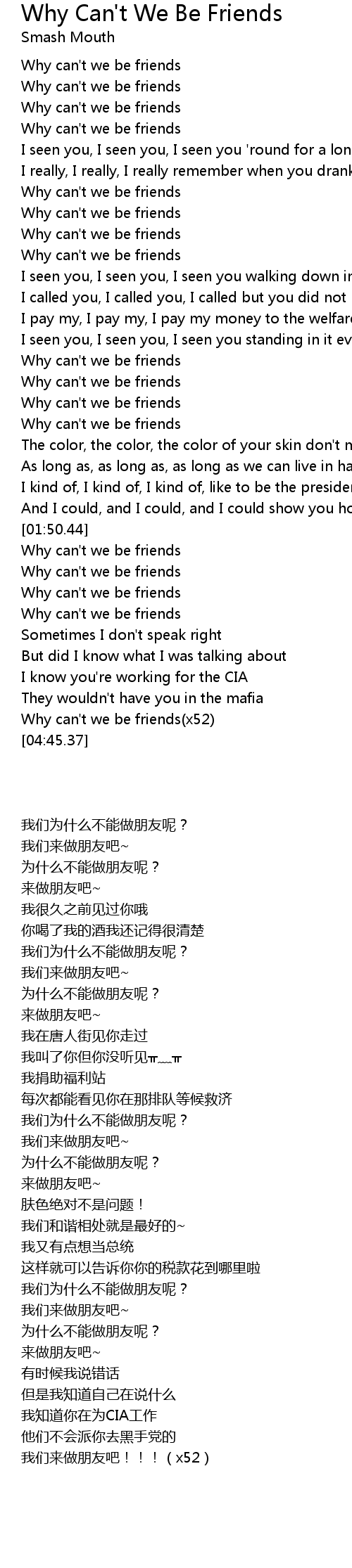 Smash Mouth Why Can T We Be Friends Unofficial Lyric Video Youtube