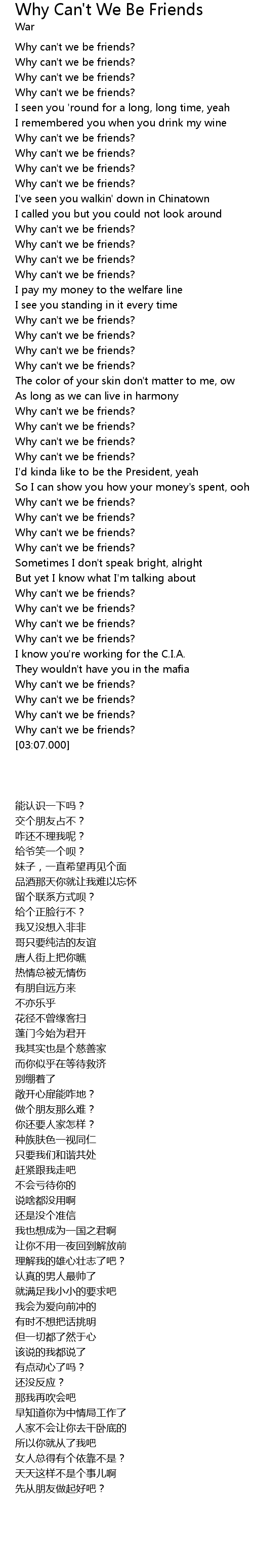 414 1 War Why Can T We Be Friends Lyrics No Copyright Intended Badd A Public Comment K 2 Years Ago What Is Ironic Is That The Band Is Name War And The