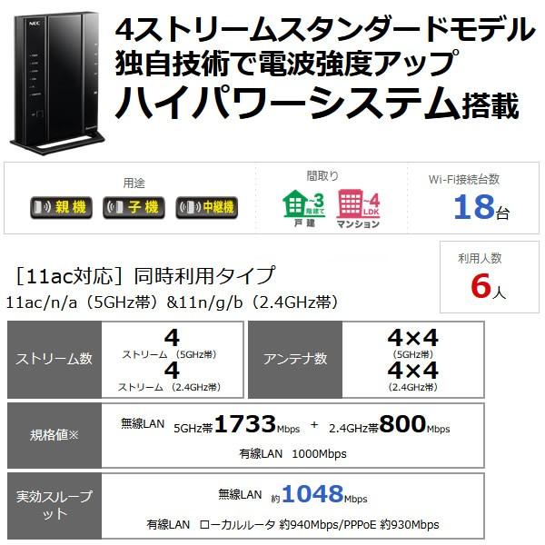 Amazon Co Jp Nec Aterm Wg2600hs Wireless Lan Router Parent Unit 1733mbps 11ac 800mbps 11n 1000mbps Wired Lan Pa Wg2600hs Computers Peripherals