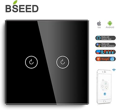 Bseed Wifi Touch Switch Compatible With Alexa And Google Home 2 Gang 1 Way Glass Panel Touch Sensor Wall Switches Black Neutral Line Need Amazon Co Uk Diy Tools