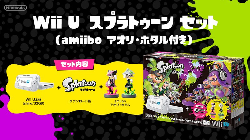 任天堂株式会社 V Twitter Wii U スプラトゥーン セット Amiibo アオリ ホタル付き は本日発売です スプラトゥーン がはじめから本体に入っているので 持ち帰ってすぐにお楽しみいただけます Https T Co Wraekgvrzh