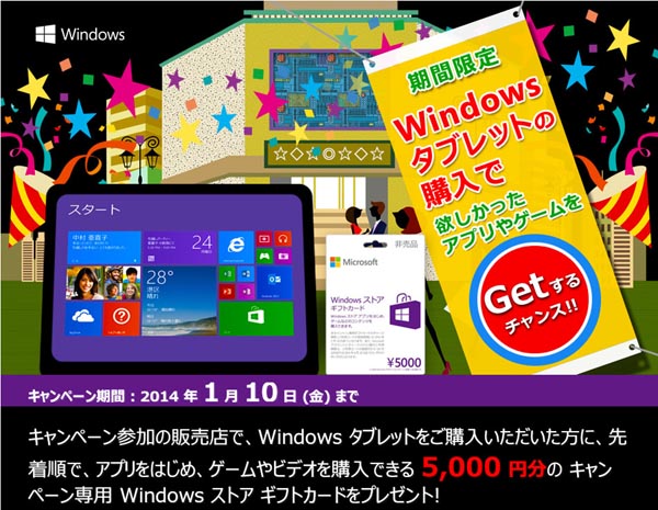 日本マイクロソフト Windowsタブレット購入でギフトカード5000円分がもらえる 三大キャンペーン を開始 Itmedia Pc User