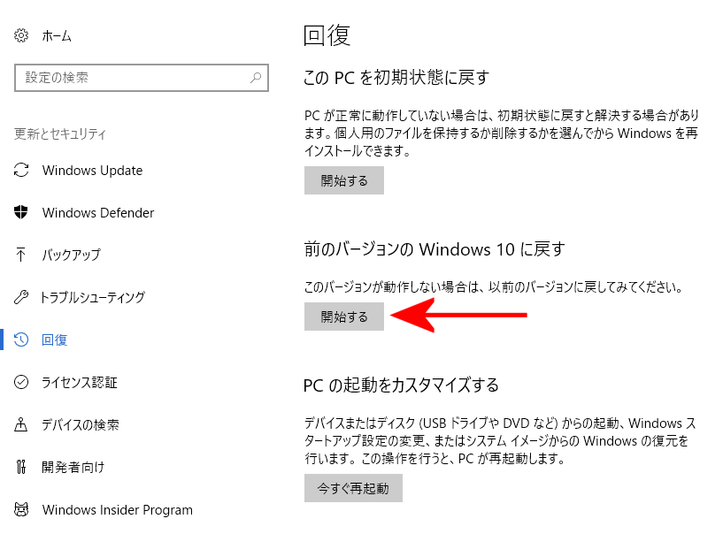 Windows10を以前のバージョンに戻す方法 パソコン市場サポート