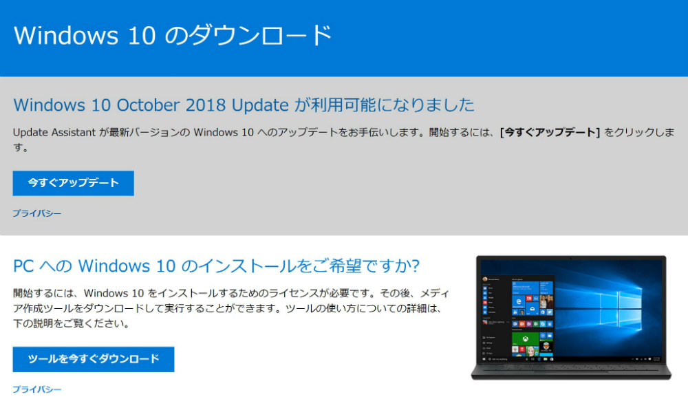 Windows 10 October 2018 Update ダウンロード