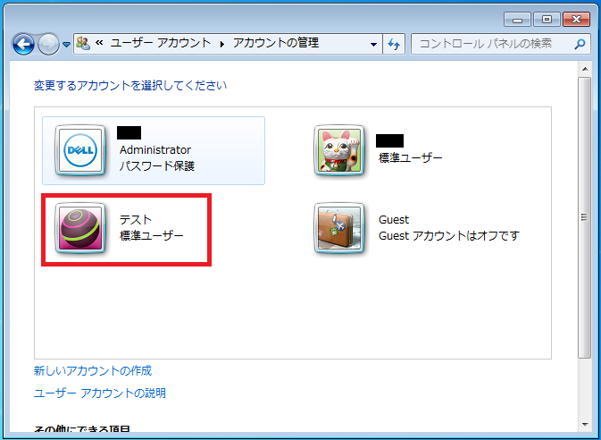Windows7 ローカルアカウントを新規で作成する パソコンの問題を改善