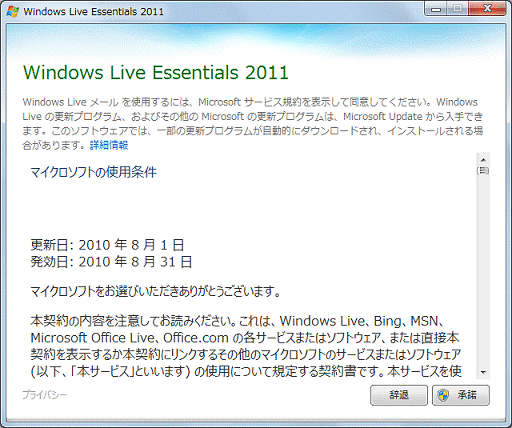 富士通q A Windows Live Essentials 2011 Windows Live プログラムを起動するときに マイクロソフトの使用条件 のメッセージが表示されます Fmvサポート 富士通パソコン
