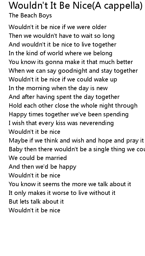 Wouldn T It Be Nice Lyrics Wouldn T It Be Nice If We Were Older Then We Wouldn T Have To Wait So Long And Wouldn T It Be Nice The Beach