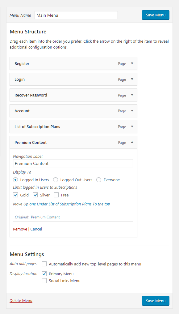 Navigation Menu Filtering Cozmoslabs