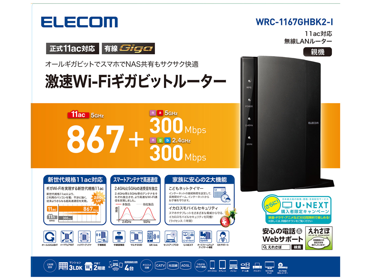 エレコム Wrc 1167ghbk2 S 11ac 867 300mbps 無線lanギガビットルーター ヤマダウェブコム