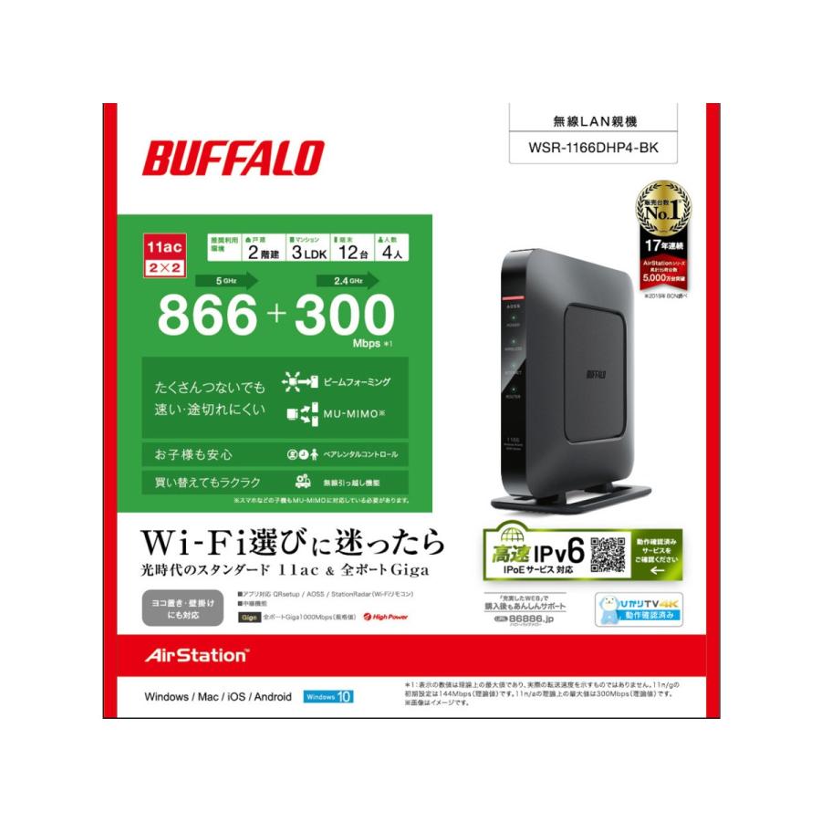 Ipv6に対応したieee802 11a B G N 海外 Ac準拠の無線lanルーター Buffalo Wsr 1166dhp4 Bk 親機単体 無線lanルータ ブラック Airstation 11ac対応 866 300mbps